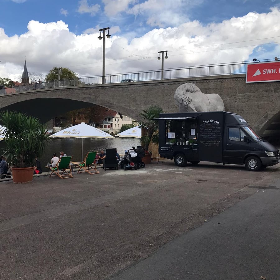 Lammspieß/ Petersilienöl/ Zitronengrassoße/ Geflämmter Romanasalat/ Junger Mais